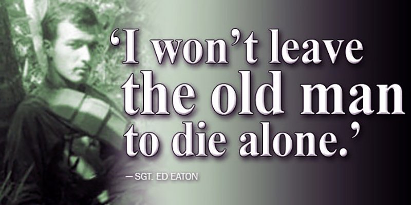 Eaton boarded a departing aircraft… then made a decision that defines the very essence of valor: Sergeant Ed Eaton jumped off the departing gunship helicopter and returned to the crash site.