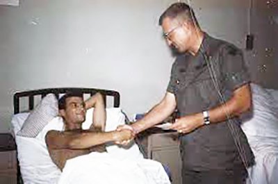 • Voluntarily returned to near-certain death situation to protect his commanding officer pinned below the aircraft in the rice paddy.