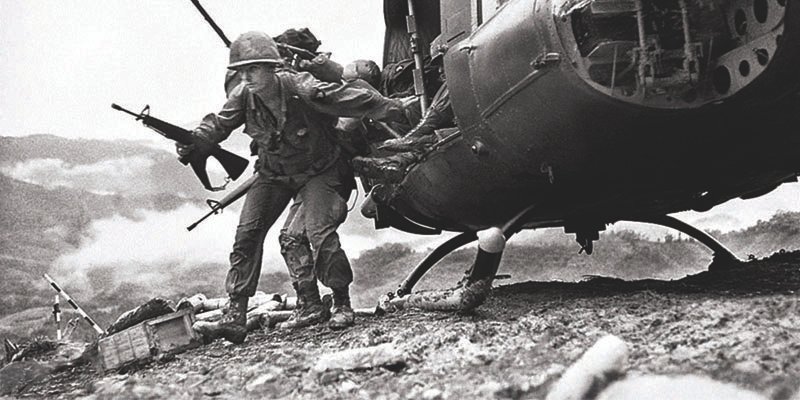 This obviously is not the Mekong Delta, but rather dropping-off of soldiers during the Battle at Hamburger Hill. Soldiers hopping off a Huey helicopter was a typical sight in Vietnam: Photo Credit: Bettmann