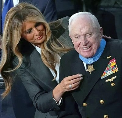 First Lady, Melania Trump placing the Medal of Honor around the neck of Navy Captain Royce Williams at the State of the Union Address, Feb 2026